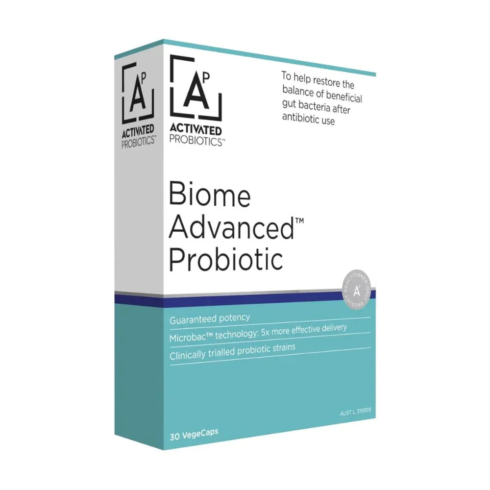 Adults and children over 12 years: take 1 capsule daily (with or without food), or as directed by your healthcare practitioner. Biome Advanced™ Probiotic is recommended daily during antibiotic use, starting on the first day of the course. Continue taking Biome Advanced™ Probiotic daily for at least two weeks after completing the course of antibiotics.