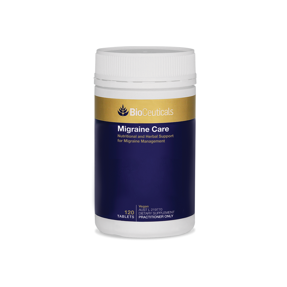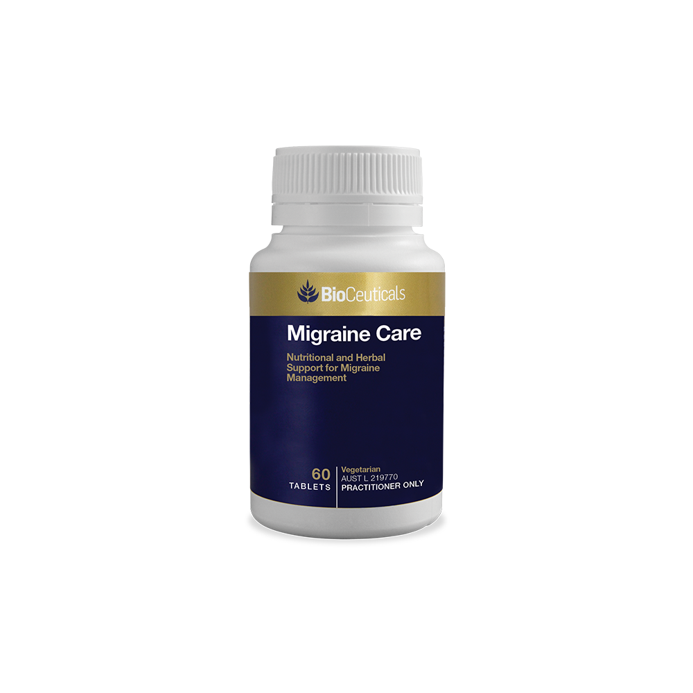 Migraine Care includes vitamin B2 to help reduce the occurrence of mild migraines. Vitamin B6 and magnesium support a healthy stress response in the body when dietary intake is inadequate. Vitamin B6 also assists in the synthesis of neurotransmitters, with magnesium and B vitamins supporting nervous system function. Co-enzyme Q10, B vitamins and magnesium support energy production.