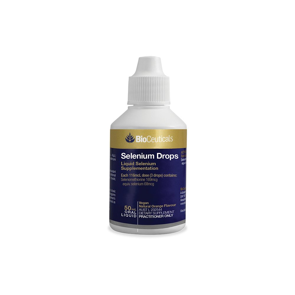 Selenium Drops is a liquid selenium supplement that aids in thyroid hormone production, supports healthy immune system function and helps to maintain cardiovascular system health. Selenium also supports muscle function and sperm heath and sperm motility, as well as providing antioxidant activity that reduces free radicals formed in the body.