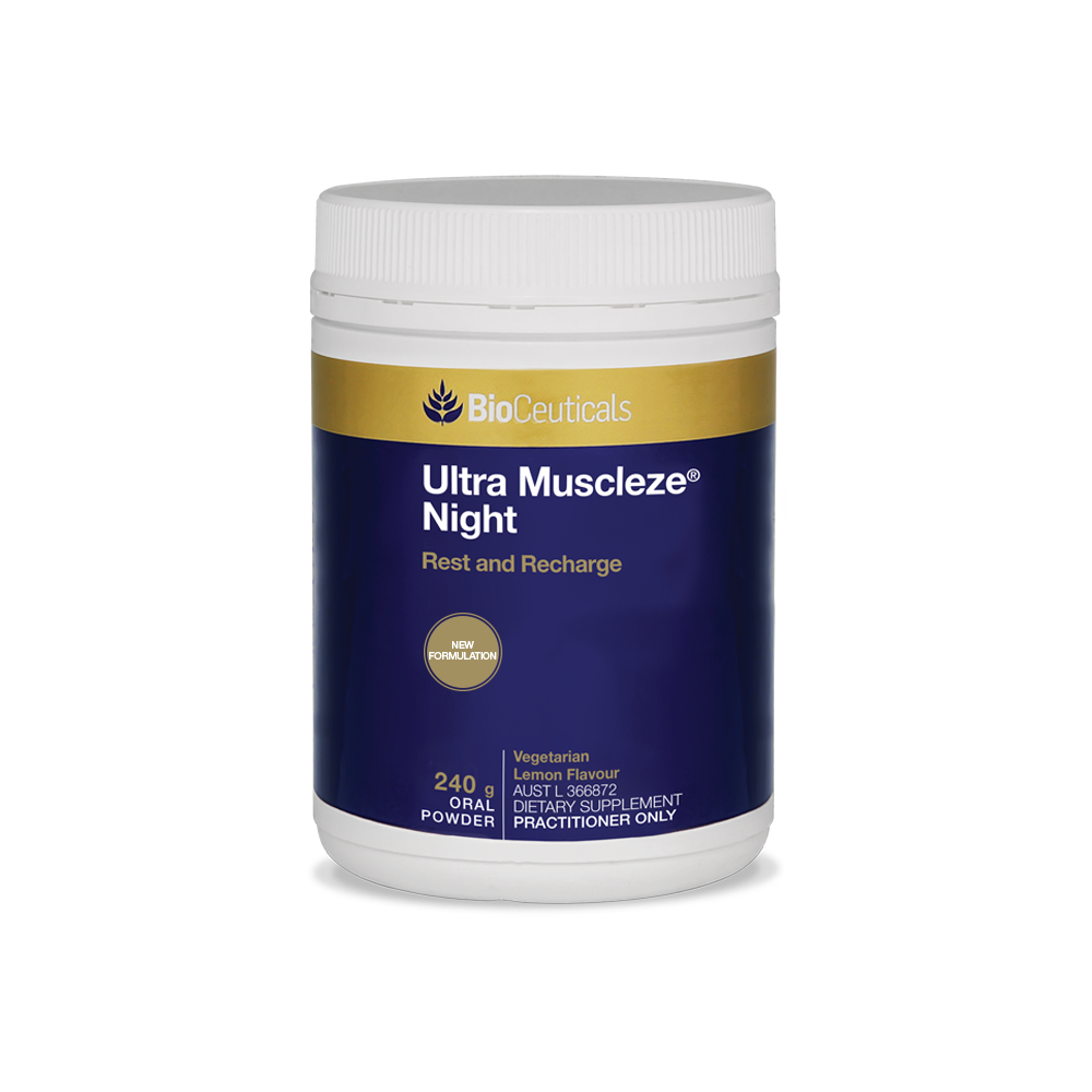 Ultra Muscleze® Night provides a readily bioavailable form of magnesium; a specialised blend of amino acid chelates called UltraMag®. Magnesium supplementation relieves sleeplessness, restlessness and excess nervous energy when dietary intake is inadequate. Magnesium supports muscle relaxation. Inositol and magnesium support healthy nervous system activity. Choline aids in the synthesis of neurotransmitters.