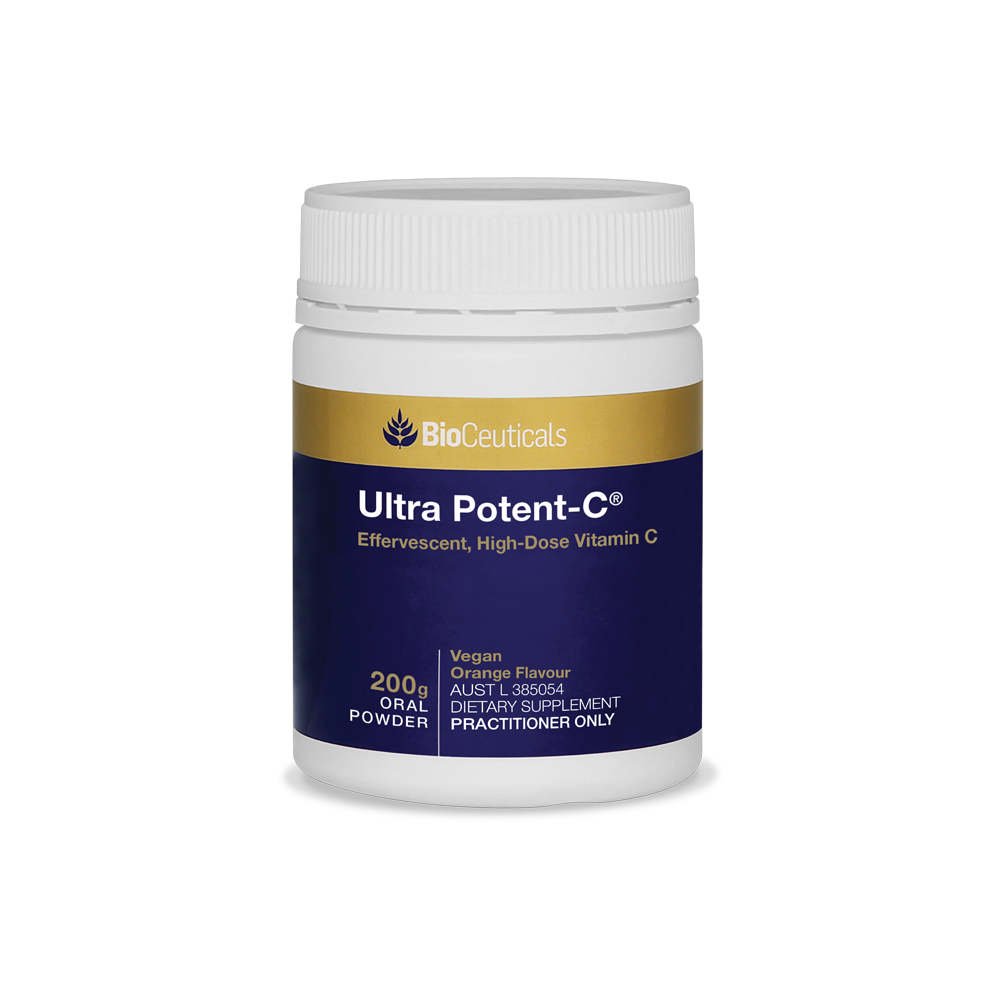 Ultra Potent-C® is an orange flavoured effervescent that contains antioxidants zinc, betacarotene and vitamins C and E to help reduce free radical damage to body cells. Vitamin C is involved in a wide range of functions including collagen formation, neurotransmitter synthesis, iron absorption and helps support the immune system to fight illness. Zinc and vitamin C maintain immune system function and support wound healing. Vitamin C also assists in supporting energy production and levels, as well as helping to relieve tiredness and fatigue.