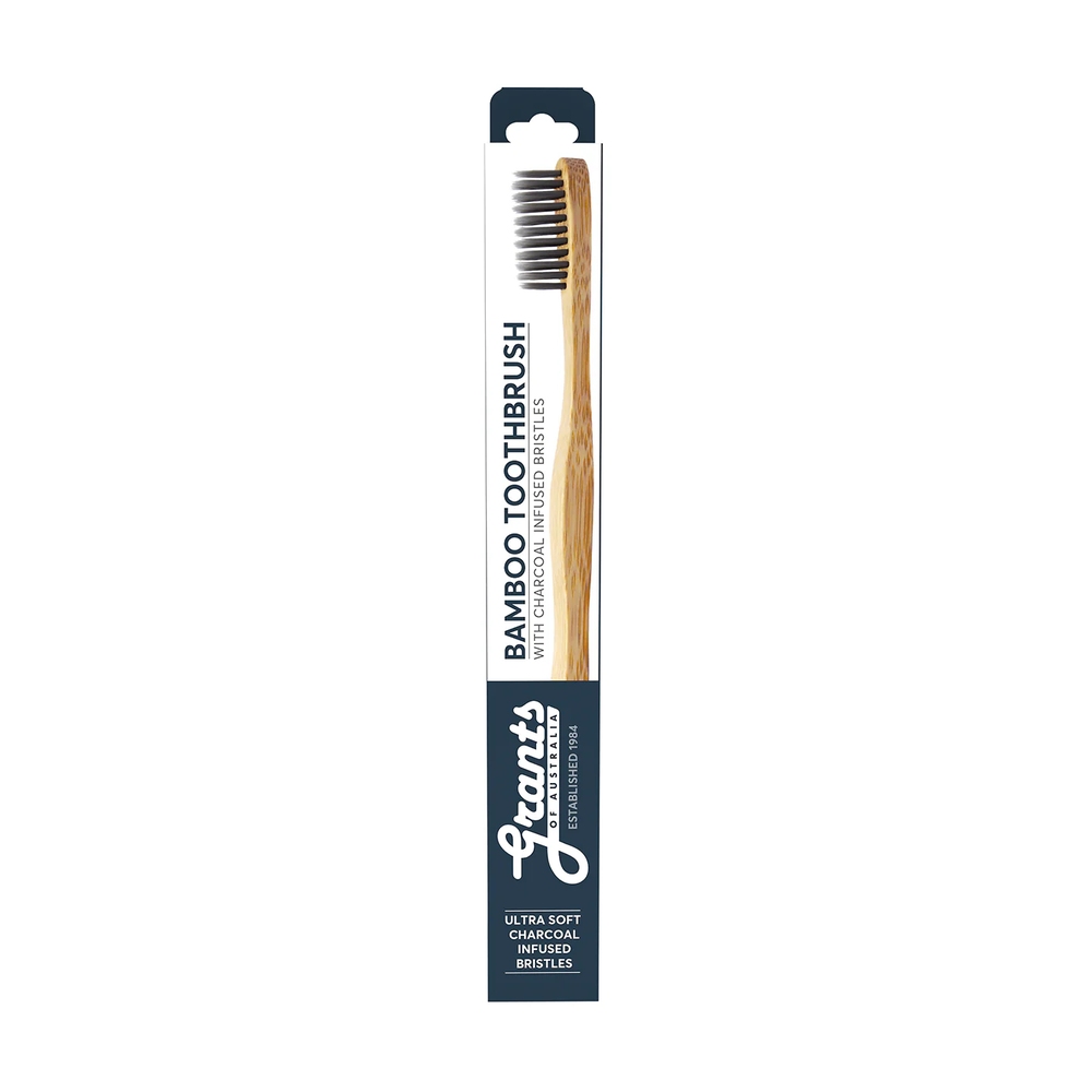 Grants ultra soft bamboo toothbrush with charcoal infused bristles is an eco-friendly way to brush your teeth.