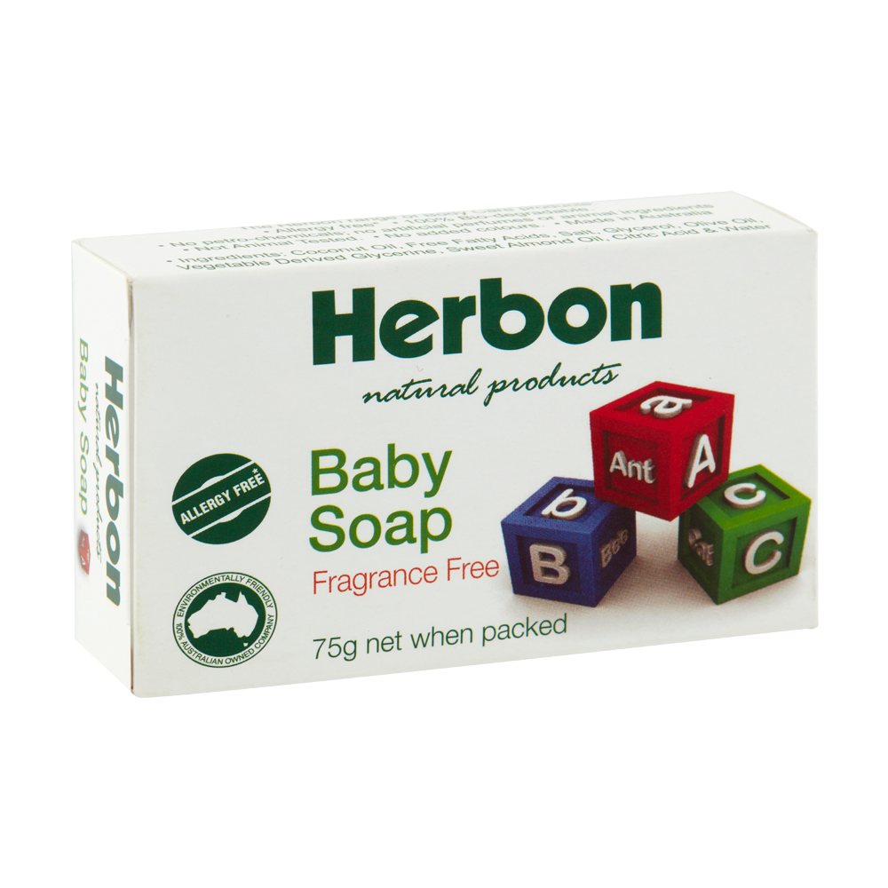- Like all Herbon products, Herbon baby soap is allergy free* and contains no-petrochemicals and no artificial perfumes or animal-derived ingredients.