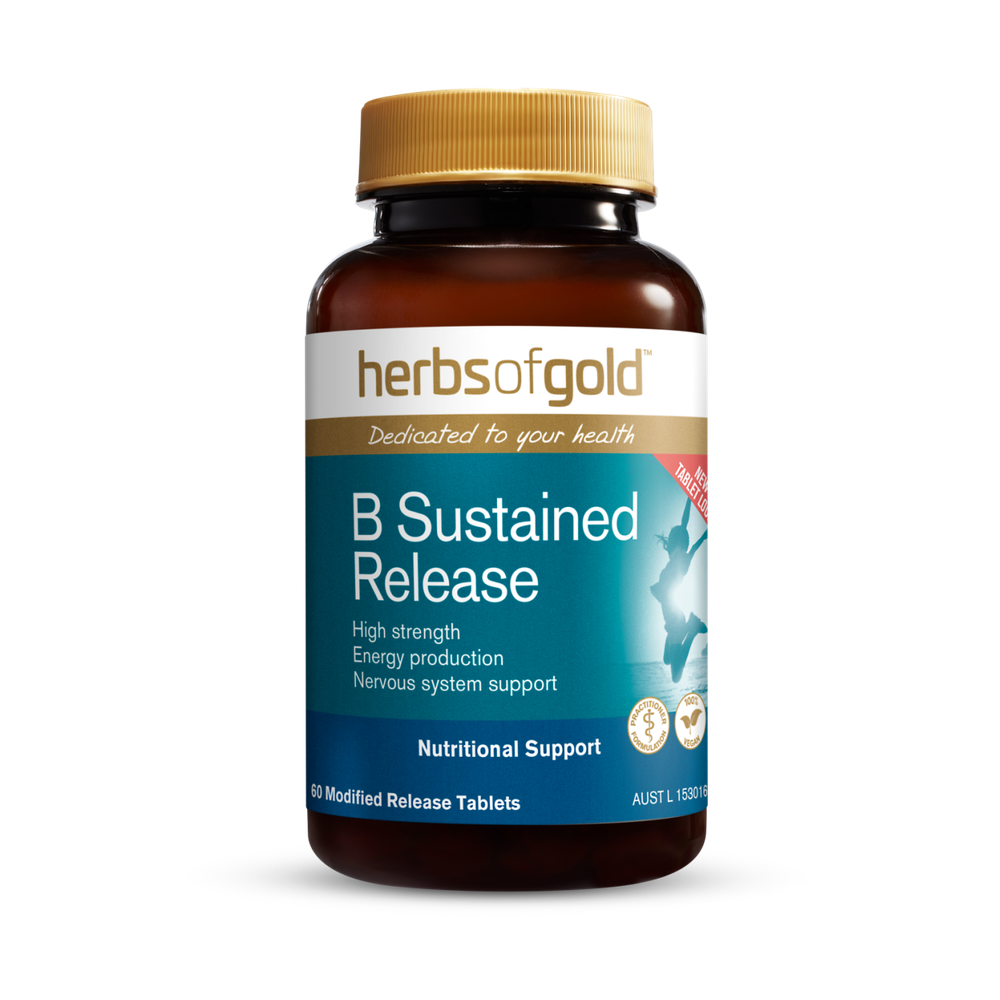 Herbs of Gold B Sustained Release contains a combination of B vitamins to support energy production and a healthy stress response in the body.