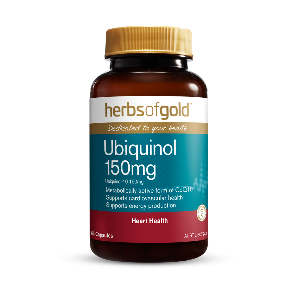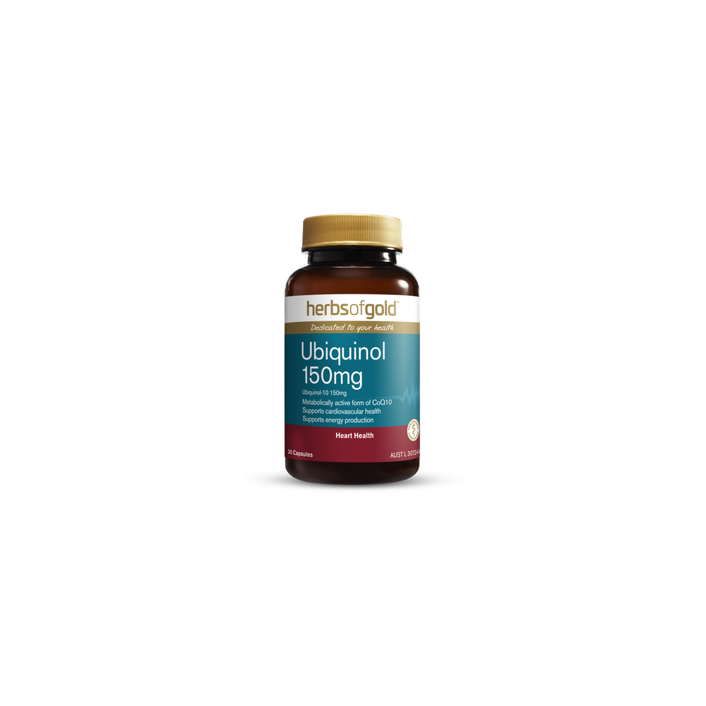 Herbs of Gold Ubiquinol 150mg contains ubiquinol-10, the metabolically active form of coenzyme Q10 (CoQ10) that is ready for use in the body.