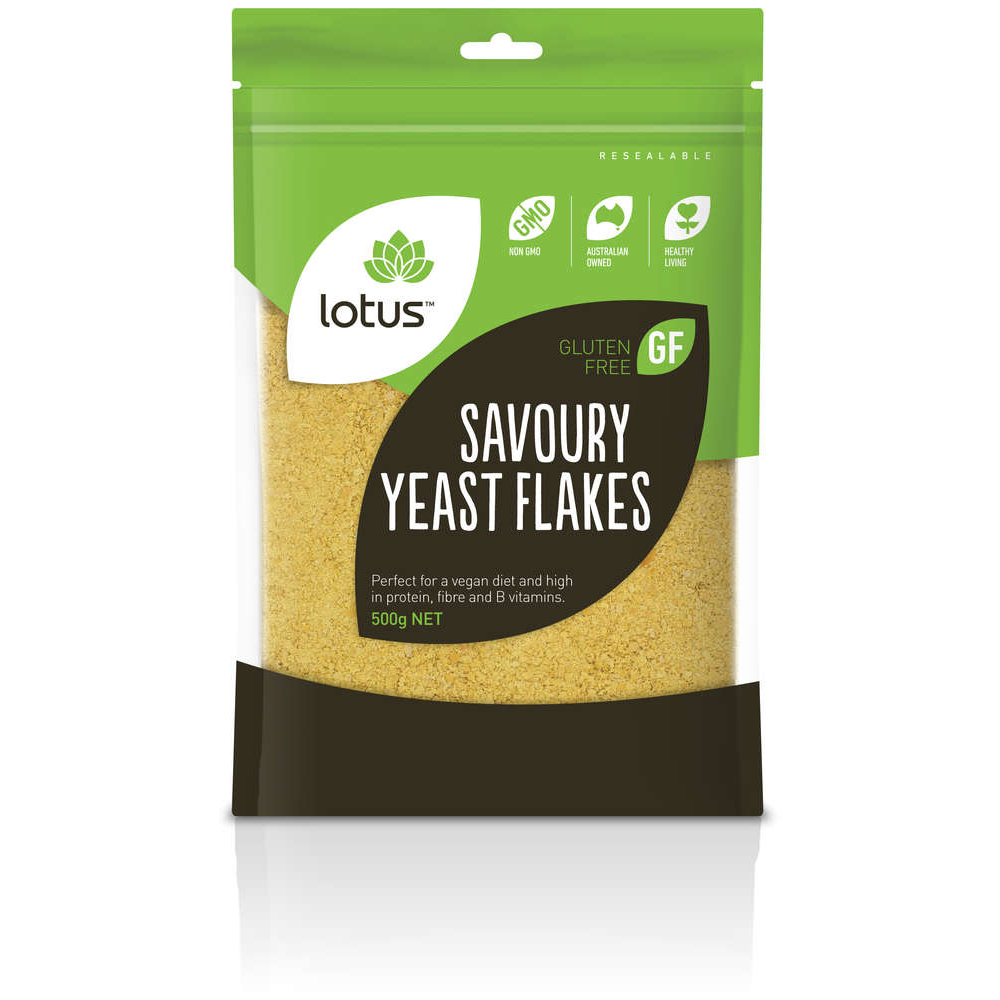 - Lotus Savoury Yeast Flakes are sourced from the USA and packed in Australia. They come in a 500gm re-sealable oxygen barrier bag to preserve freshness.