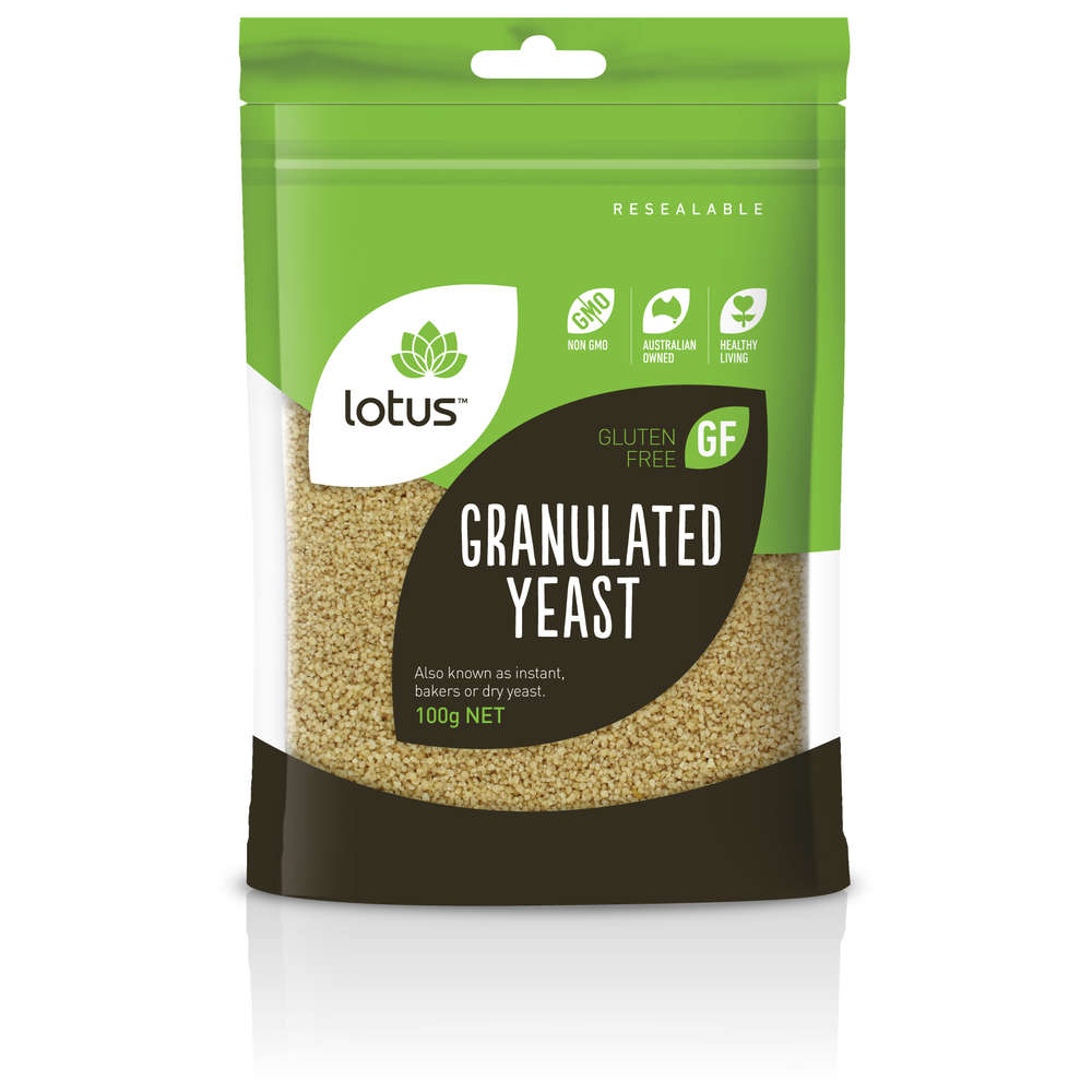 - Lotus Granulated Yeast is sourced from France and packed in Australia. It comes in a 100gm re-sealable oxygen barrier bag to preserve freshness.