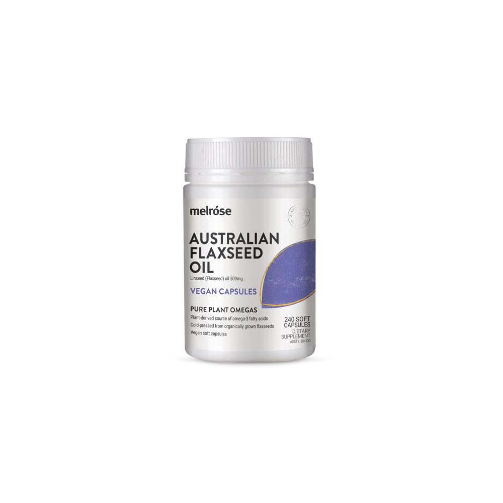 Melrose Organic Flaxseed Oil capsules contain Flaxseed Oil, cold-pressed from organically-grown Australian flaxseeds.