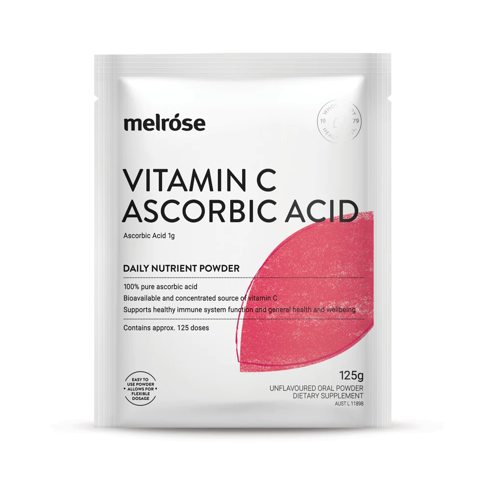 Melrose Vitamin C Ascorbic Acid is a 100% pure form of Vitamin C which supports immune system health, while also working as an antioxidant to prevent free radical damage to body cells.