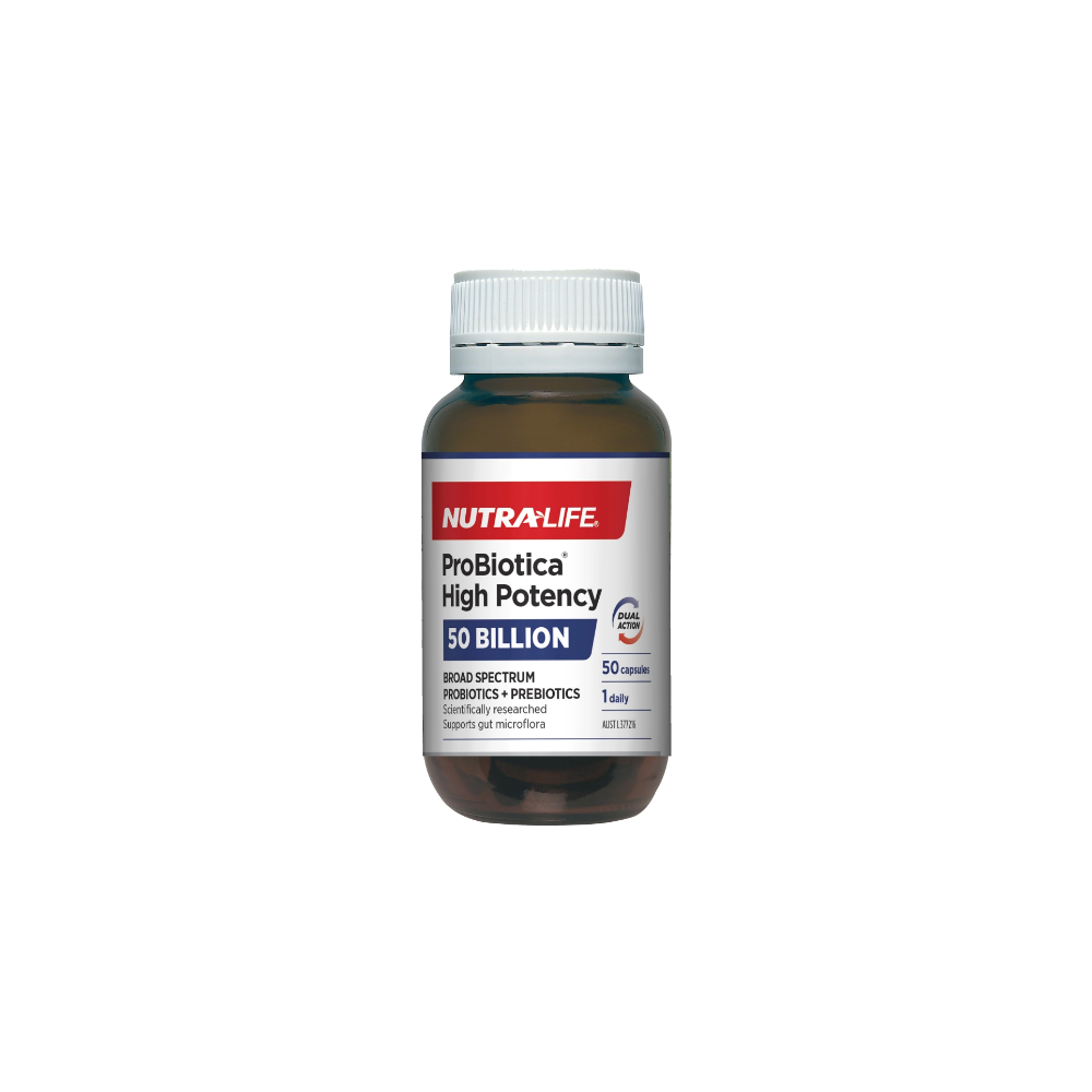 This broad spectrum probiotic & prebiotic formula offers support for digestive and immune health. Formulated to contain 50 billion bacteria from 5 researched strains including the probiotic strain Howaru®, Nutra-Life ProBiotica® High Potency 50 Billion helps to support: