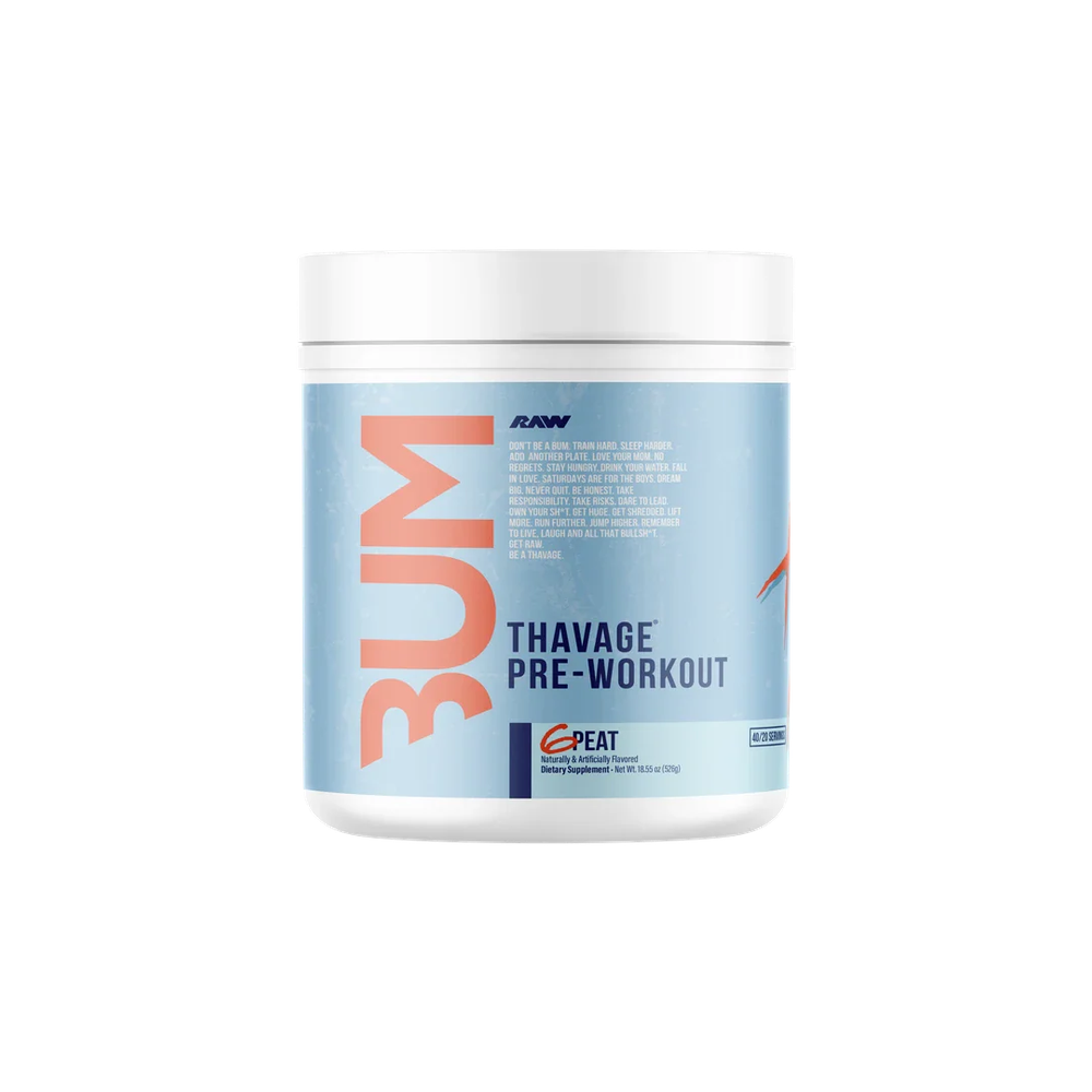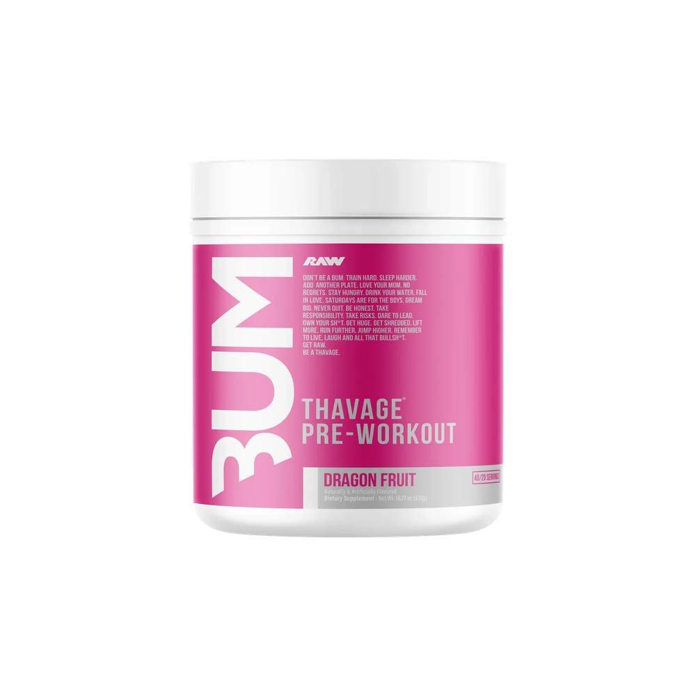 Thavage Pre is not your run-of-the-mill pre-workout. Designed by thavages for thavages, this pre-workout for strength and energy delivers explosive power with every scoop.Raw Nutrition BUM THAVAGE Pre-Workout