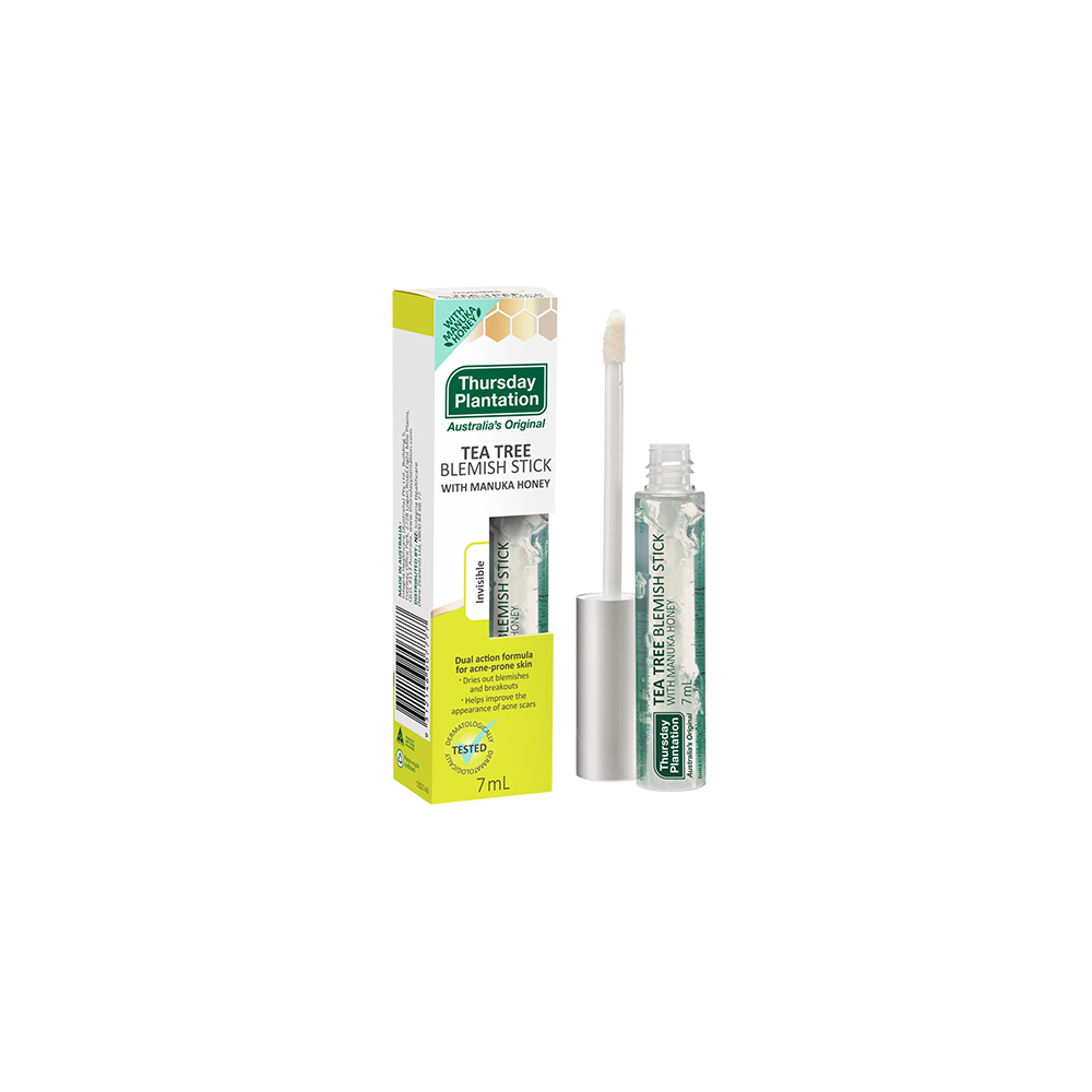 Thursday Plantation Tea Tree Blemish Stick with Manuka Honey features a dual-action formula that combines the power of 100% pure, Australian-grown Tea Tree oil with Manuka Honey.