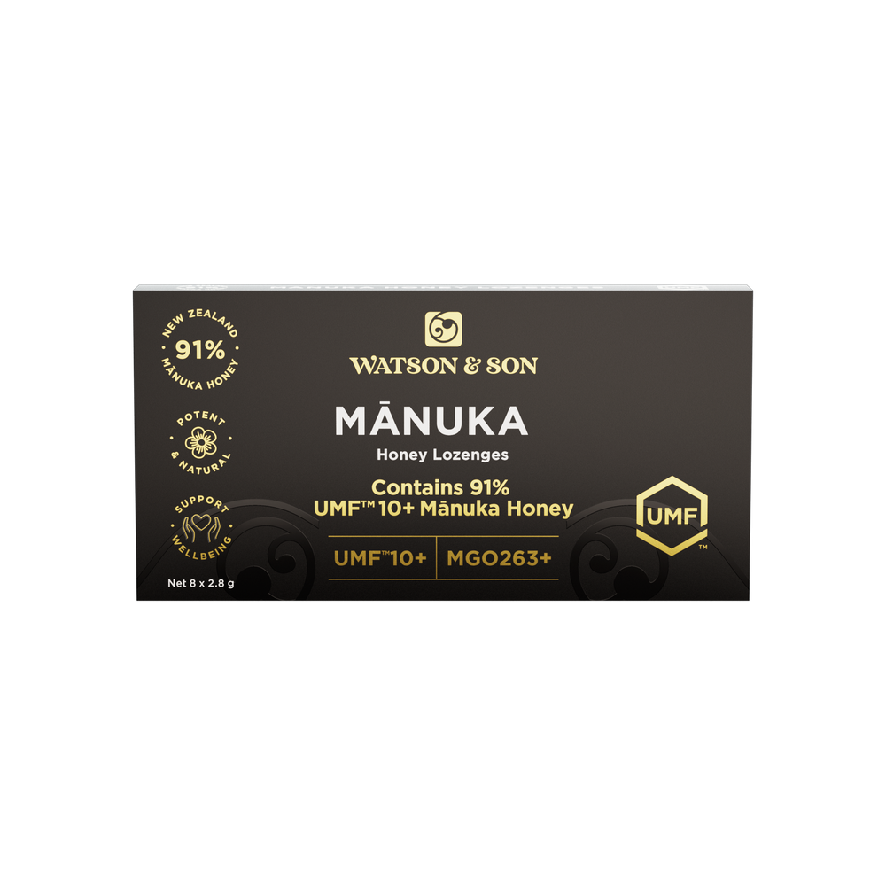 Experience the benefits of Watson & Son UMF 10+ grade Mānuka honey with our soothing lozenges.